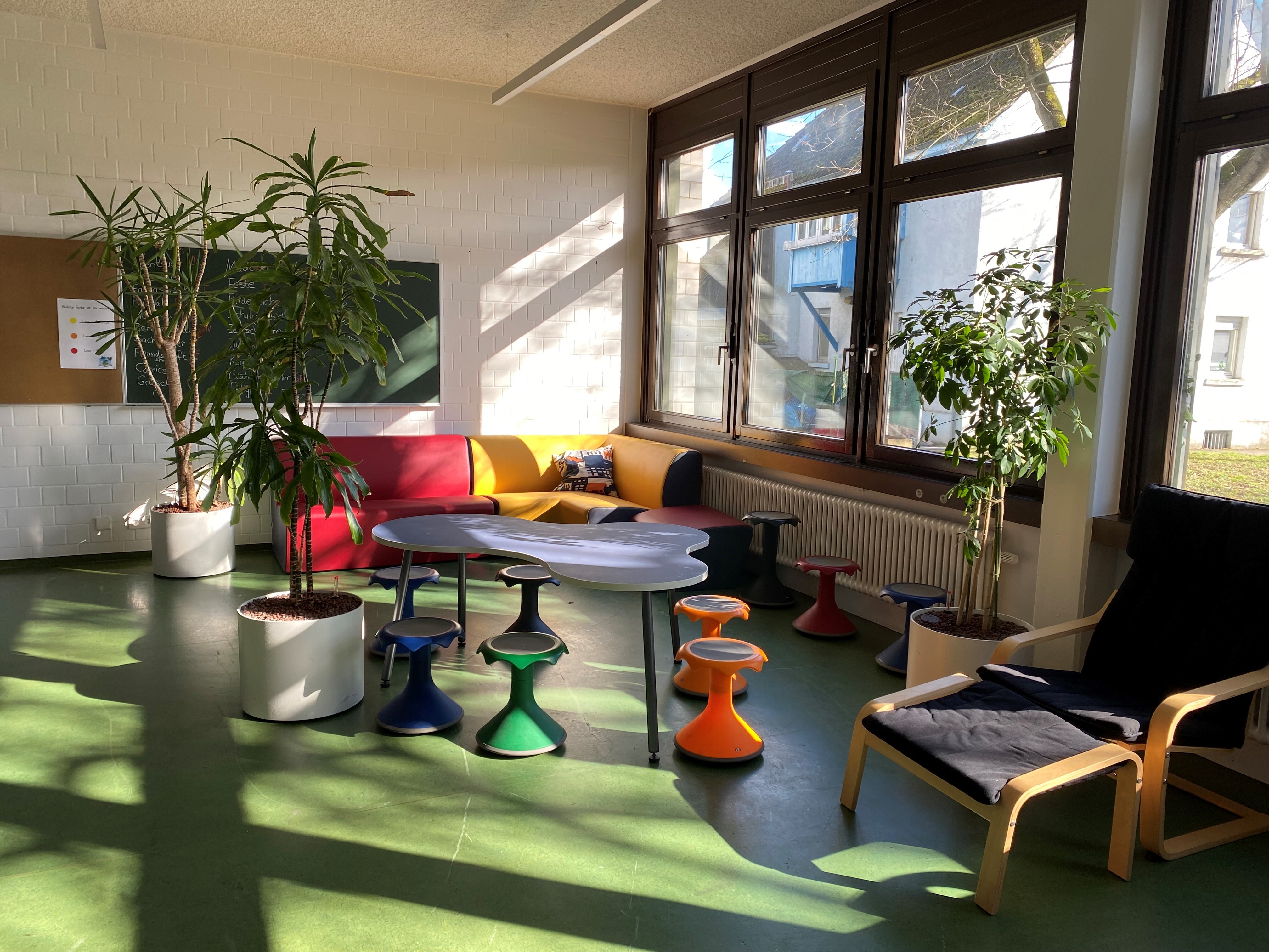 Herzlichen Dank dem Elternbeirat und dem Förderverein, die uns mit Spenden unterstützen, damit wir gemütliche Sitzgelegenheiten anschaffen können. Ein Dank geht ebenfalls an die Stadt Heilbronn, die uns durch den Umbau der Stadtbibliothek übrig gebliebene Regale gespendet hat.